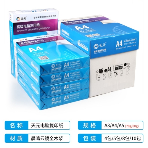 天元蓝包装复印纸 克重:70克 | 规格:A4(297*210mm) | 数量:单包装