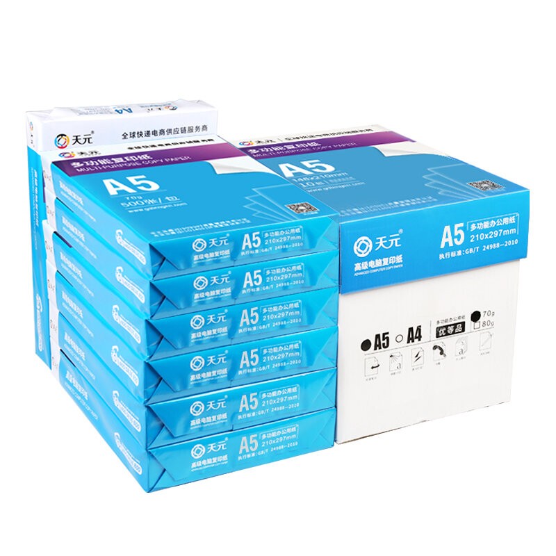 天元蓝包装复印纸 克重:70克 | 规格:A5(148*210mm) | 数量:10包/箱