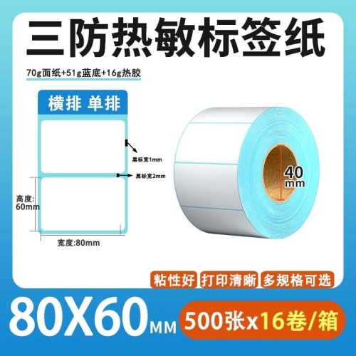不干胶 热敏标签 空白蓝格热敏标签 空白蓝格三防热敏不干胶 80*60*500张/卷*16卷/箱