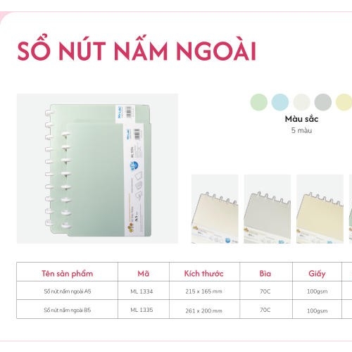 A5 外扣蘑菇钮扣笔记本 100克/平方米 100页编码:ML1334