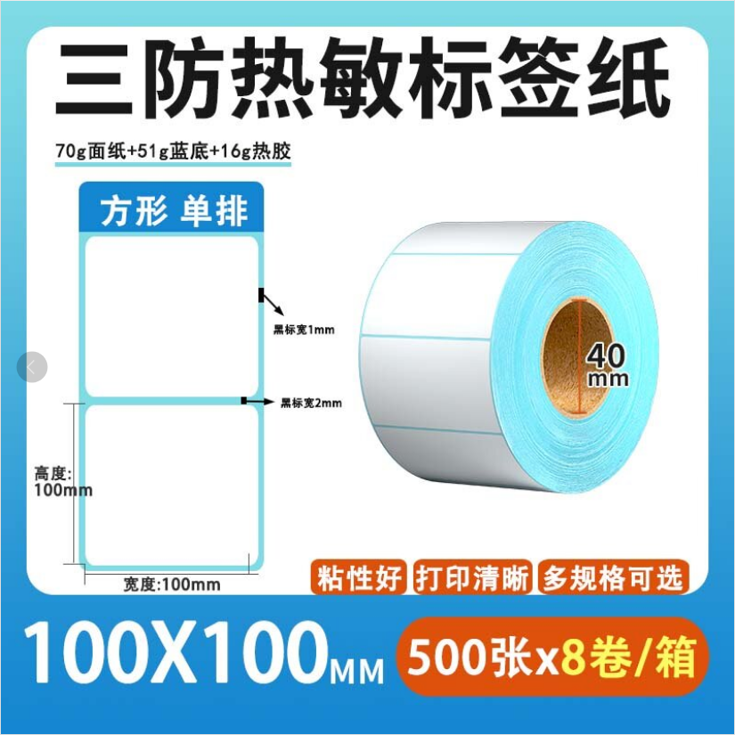 不干胶 热敏标签 空白蓝格热敏标签 空白蓝格三防热敏不干胶 100*100mm*500张/卷*8卷/箱