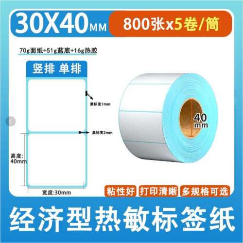 不干胶 热敏标签 空白蓝格热敏标签 空白蓝格三防热敏不干胶 30*40*800张/卷*5卷/筒