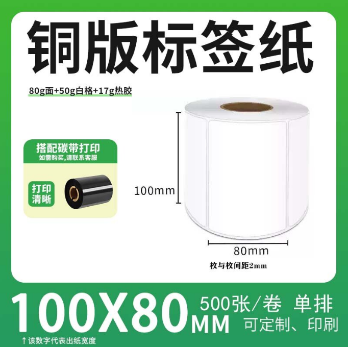 不干胶 铜版标签 空白铜版标签 白格铜版纸不干胶带裂线 100*80*500枚/卷(单排) 货 号:KY000532