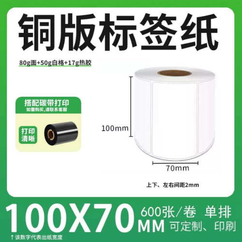 不干胶 铜版标签 空白铜版标签 白格铜版纸不干胶带裂线 100*70*600枚/卷(单排) 货 号:KY000533