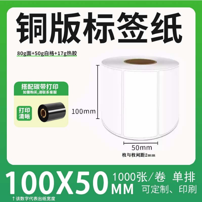 不干胶 铜版标签 空白铜版标签 白格铜版纸不干胶带裂线 100*50*1000枚/卷(单排) 货 号:KY000538