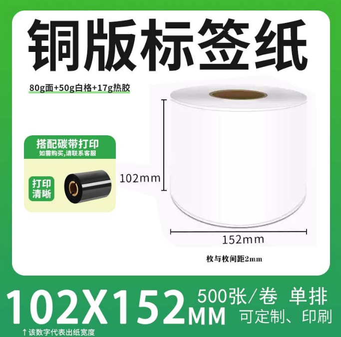 不干胶 铜版标签 空白铜版标签 白格铜版纸不干胶 102*152*500枚/卷(单排) 货 号:KY000561