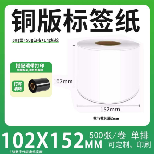 不干胶 铜版标签 空白铜版标签 白格铜版纸不干胶 102*152*500枚/卷(单排)
