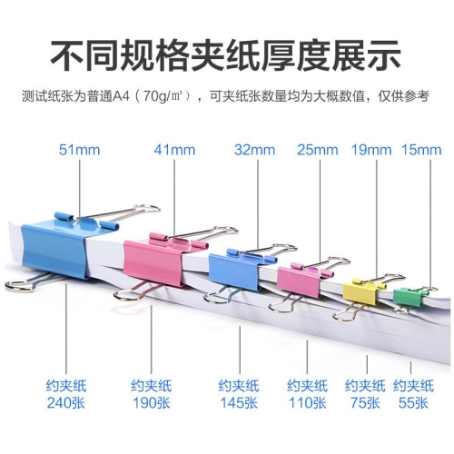 佳多力彩色/黑色长尾夹票夹 规格:1#51mm长尾夹 | 颜色:彩色/黑色 | 数量:12个/筒 货 号:KY000560