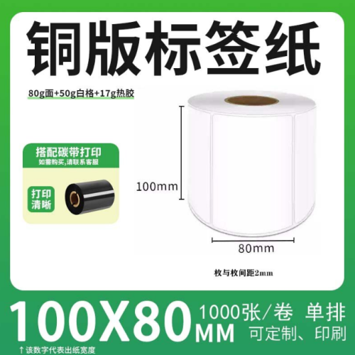 不干胶 铜版标签 空白铜版标签 白格铜版纸不干胶 100*80*1000枚/卷(单排)