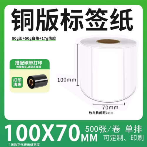 不干胶 铜版标签 空白铜版标签 白格铜版纸不干胶 100*70*500枚/卷(单排) 货 号:KY000594