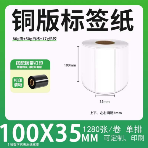 不干胶 铜版标签 空白铜版标签 白格铜版纸不干胶 100*35*1280枚/卷(单排)