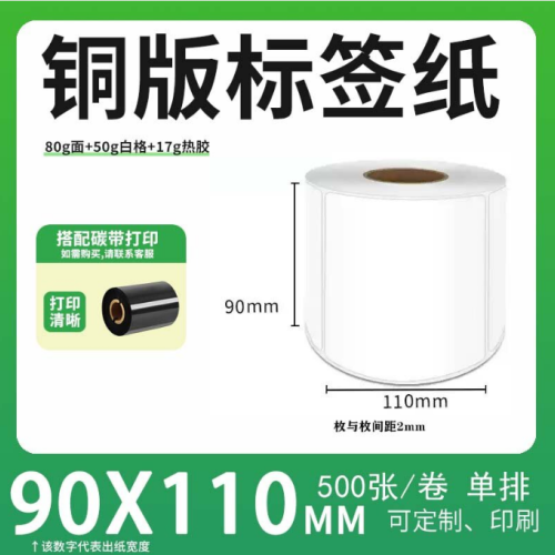 不干胶 铜版标签 空白铜版标签 白格铜版纸不干胶 90*110*500枚/卷(单排) 货 号:KY000610
