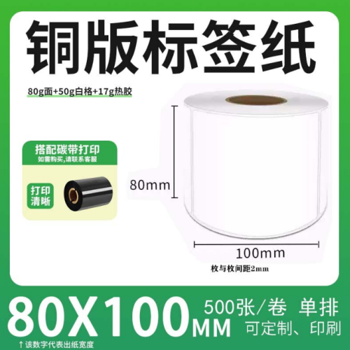 不干胶 铜版标签 空白铜版标签 白格铜版纸不干胶 80*100*500枚/卷(单排) 货 号:KY000631
