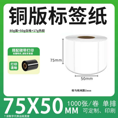 不干胶 铜版标签 空白铜版标签 白格铜版纸不干胶 75*50*1000枚/卷(单排)