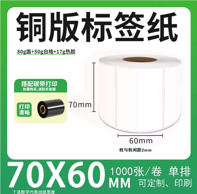不干胶 铜版标签 空白铜版标签 白格铜版纸不干胶 70*60*1000枚/卷(单排)