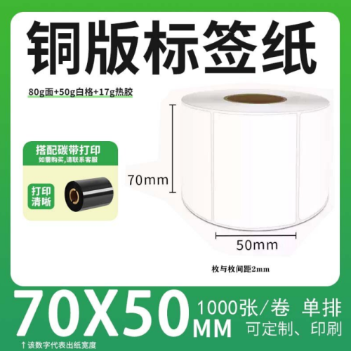 不干胶 铜版标签 空白铜版标签 白格铜版纸不干胶 70*50*1000枚/卷(单排)
