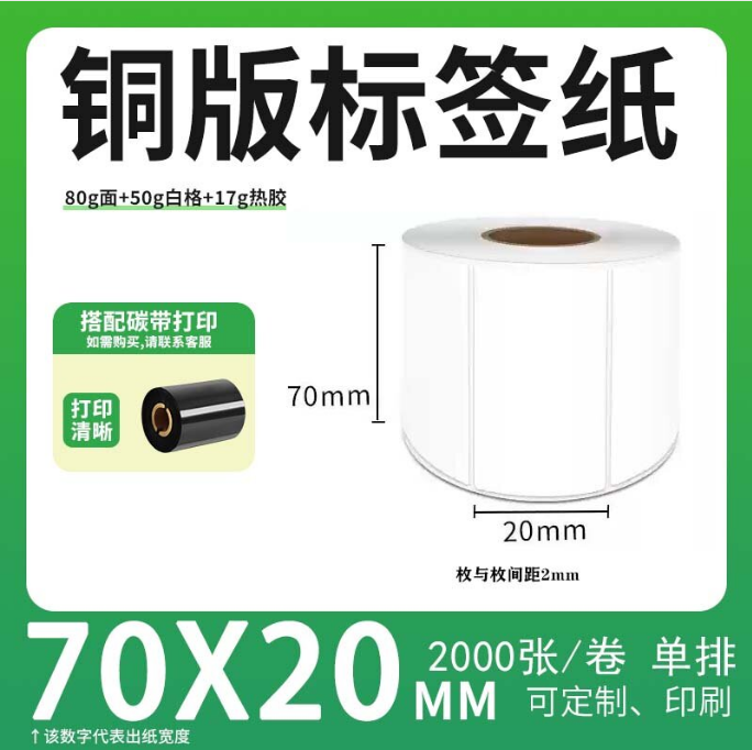 不干胶 铜版标签 空白铜版标签 白格铜版纸不干胶 70*20*2000枚/卷(单排)