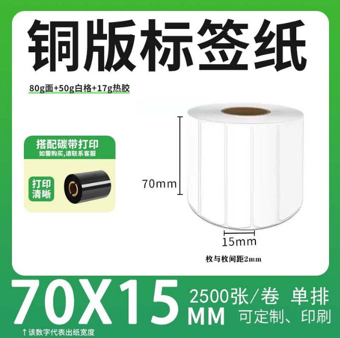 不干胶 铜版标签 空白铜版标签 白格铜版纸不干胶 70*15*2500枚/卷(单排)