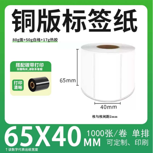 不干胶 铜版标签 空白铜版标签 白格铜版纸不干胶 65*40*1000枚/卷(单排)