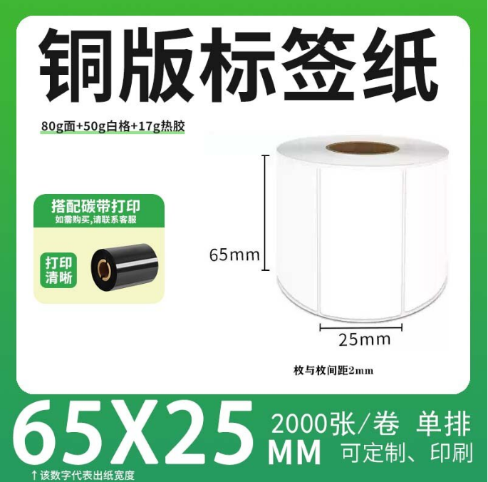 不干胶 铜版标签 空白铜版标签 白格铜版纸不干胶 65*25*2000枚/卷(单排) 货 号:KY000705