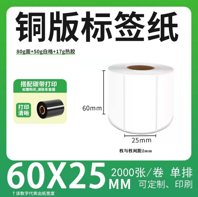不干胶 铜版标签 空白铜版标签 白格铜版纸不干胶 60*25*2000枚/卷(单排)