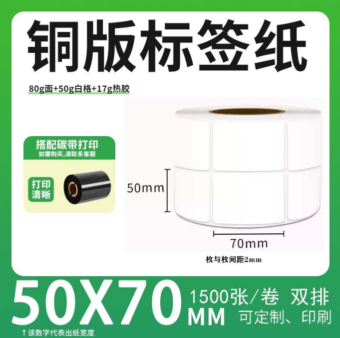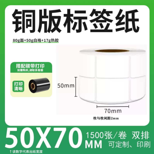 不干胶 铜版标签 空白铜版标签 白格铜版纸不干胶 50*70*1500枚/卷(2排) 货 号:KY000828