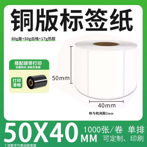 不干胶 铜版标签 空白铜版标签 白格铜版纸不干胶 50*40*1000枚/卷(单排)