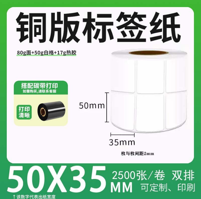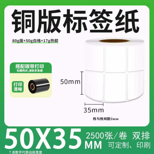 不干胶 铜版标签 空白铜版标签 白格铜版纸不干胶 50*35*2500枚/卷(2排) 货 号:KY000834