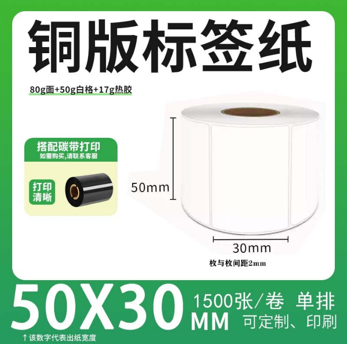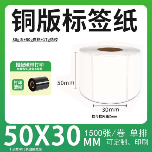 不干胶 铜版标签 空白铜版标签 白格铜版纸不干胶 50*30*1500枚/卷(单排)