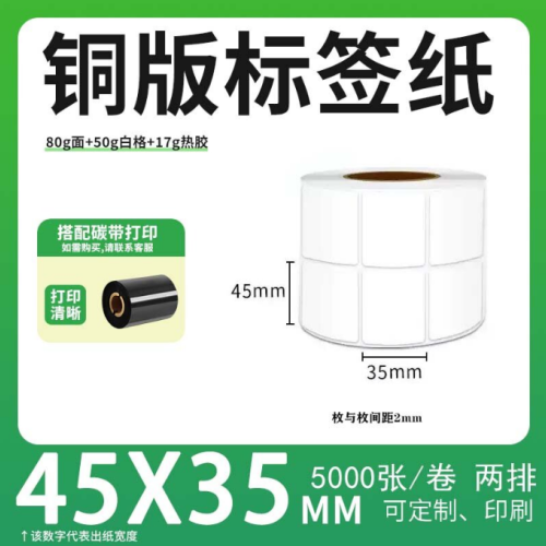 不干胶 铜版标签 空白铜版标签 白格铜版纸不干胶 45*35*5000枚/卷(2排) 货 号:KY000849