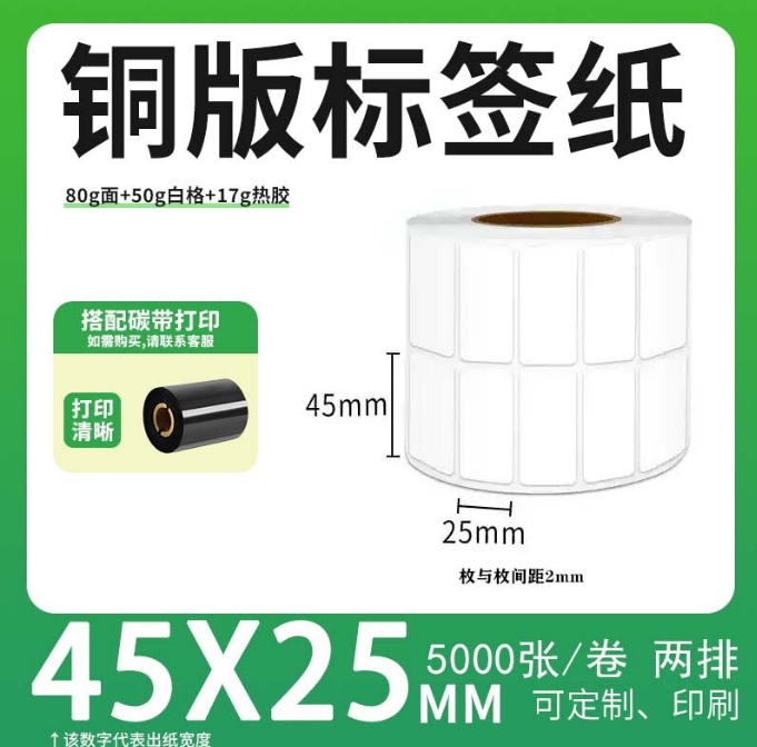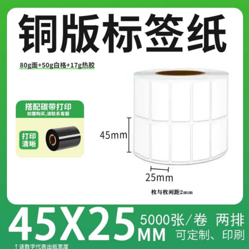 不干胶 铜版标签 空白铜版标签 白格铜版纸不干胶 45*25*5000枚/卷(2排)