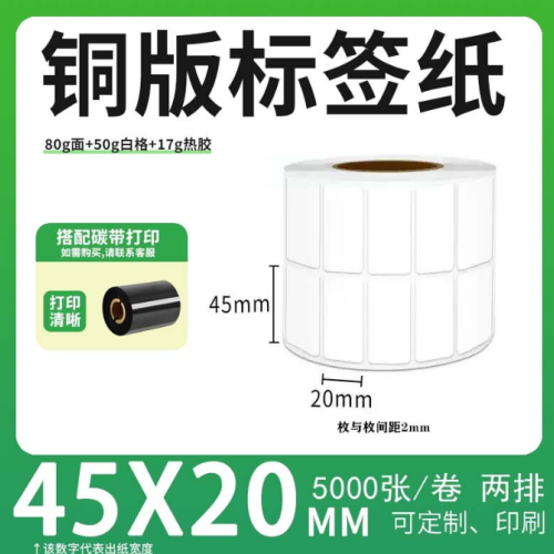 不干胶 铜版标签 空白铜版标签 白格铜版纸不干胶 45*20*5000枚/卷(2排)