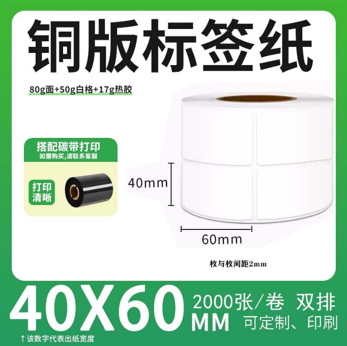 不干胶 铜版标签 空白铜版标签 白格铜版纸不干胶 40*60*2000枚/卷(2排)