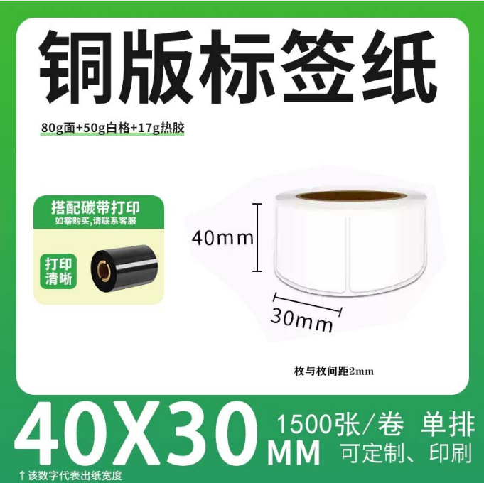 不干胶 铜版标签 空白铜版标签 白格铜版纸不干胶 40*30*1500枚/卷(单排) 货 号:KY000877