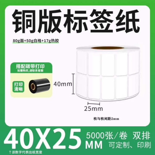 不干胶 铜版标签 空白铜版标签 白格铜版纸不干胶 40*25*5000枚/卷(2排)