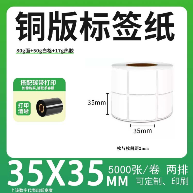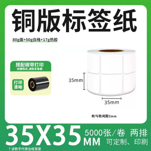 不干胶 铜版标签 空白铜版标签 白格铜版纸不干胶 35*35*5000枚/卷(2排) 货 号:KY000889
