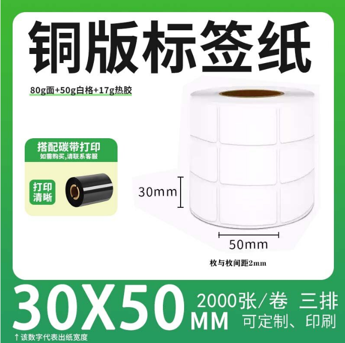 不干胶 铜版标签 空白铜版标签 白格铜版纸不干胶 30*50*2000枚/卷(3排)