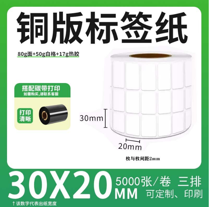不干胶 铜版标签 空白铜版标签 白格铜版纸不干胶 30*20*5000枚/卷(3排) 货 号:KY000937