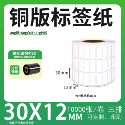 不干胶 铜版标签 空白铜版标签 白格铜版纸不干胶 30*12*10000枚/卷(3排)