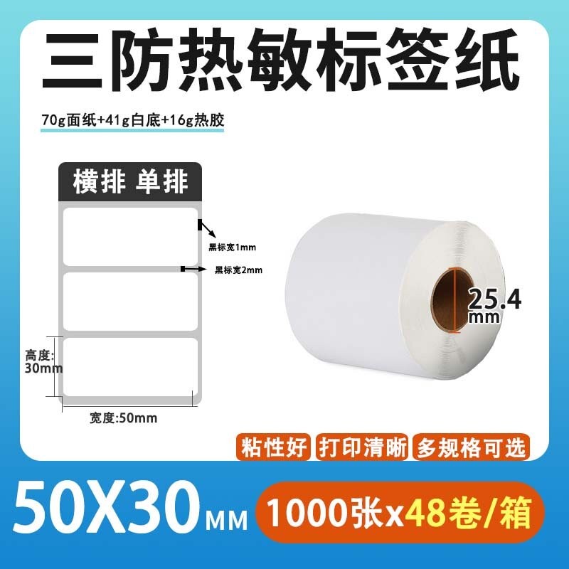 不干胶 热敏标签 空白白格热敏标签 空白白格三防热敏不干胶 50*30mm-1000张/卷*48卷/箱