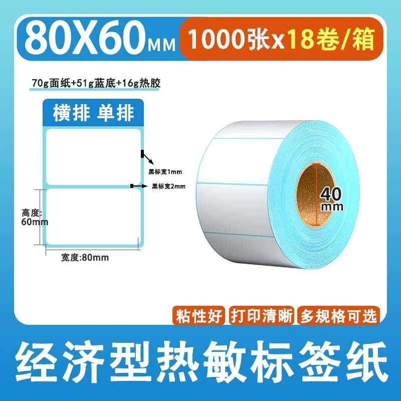 不干胶 热敏标签 空白蓝格热敏标签 空白蓝格三防热敏不干胶 80*60*1000张/卷*18卷/箱