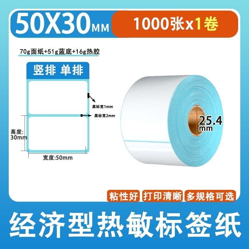 不干胶 热敏标签 空白蓝格热敏标签 空白蓝格三防热敏不干胶 50*30*1000张/卷