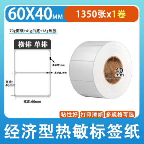 不干胶 热敏标签 空白白格热敏标签 空白白格三防热敏不干胶 60*40*1350张/卷 货 号:KY000039