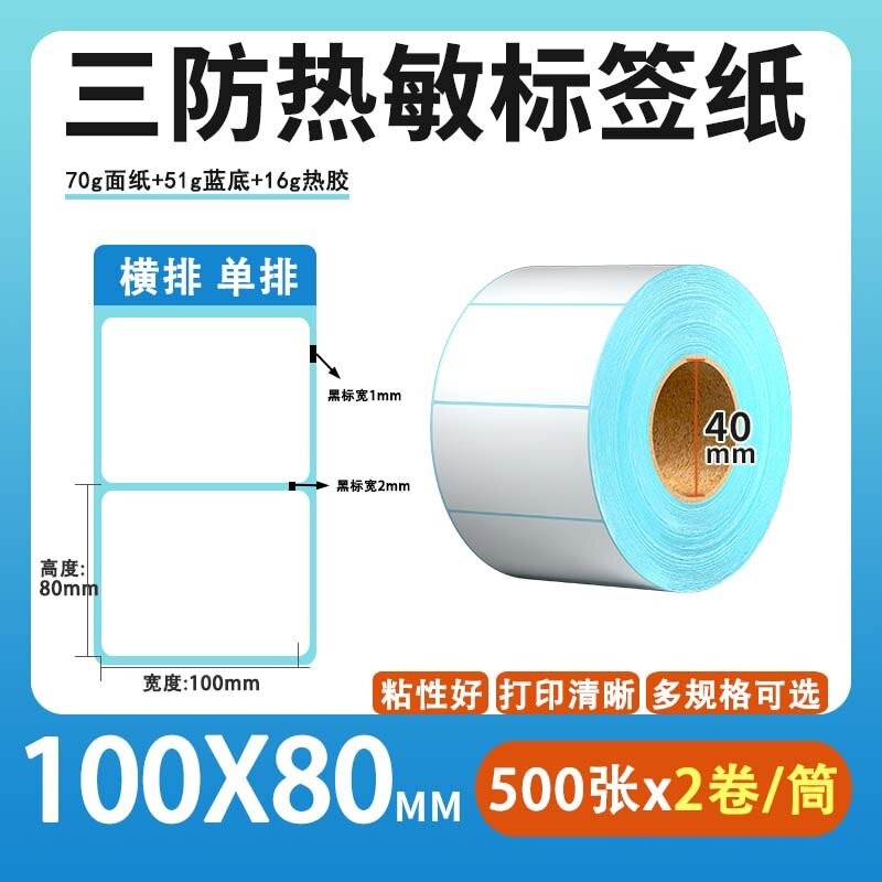 不干胶 热敏标签 空白蓝格热敏标签 空白蓝格三防热敏不干胶 100*80*500张/卷*2卷/筒