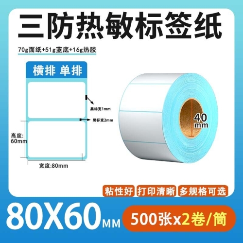 不干胶 热敏标签 空白蓝格热敏标签 空白蓝格三防热敏不干胶 80*60*500张/卷*2卷/筒