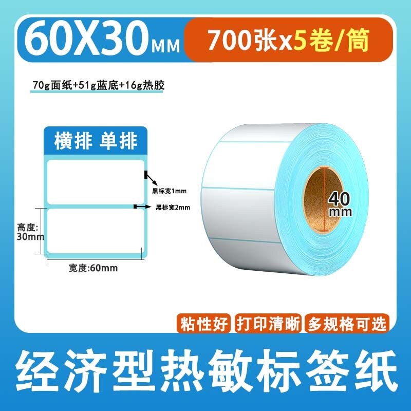 不干胶 热敏标签 空白蓝格热敏标签 空白蓝格三防热敏不干胶 60*30*700张/卷*5卷/筒