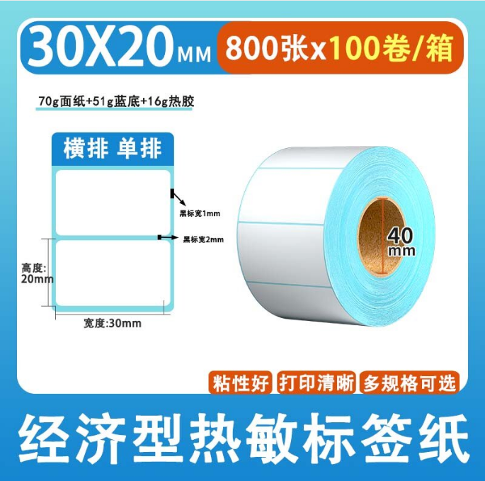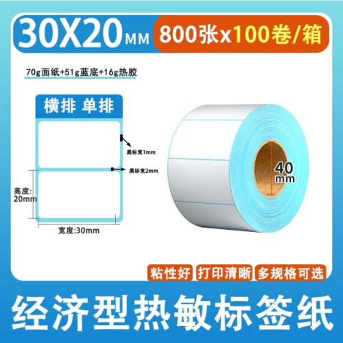 不干胶 热敏标签 空白蓝格热敏标签 空白蓝格三防热敏不干胶 30*20*800张/卷*100卷/箱
