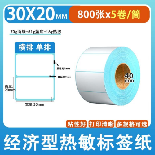 不干胶 热敏标签 空白蓝格热敏标签 空白蓝格三防热敏不干胶 30*20*800张/卷*5卷/筒 货 号:KY000481
