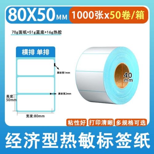 不干胶 热敏标签 空白蓝格热敏标签 空白蓝格三防热敏不干胶 80*50*1000张/卷*50卷/箱