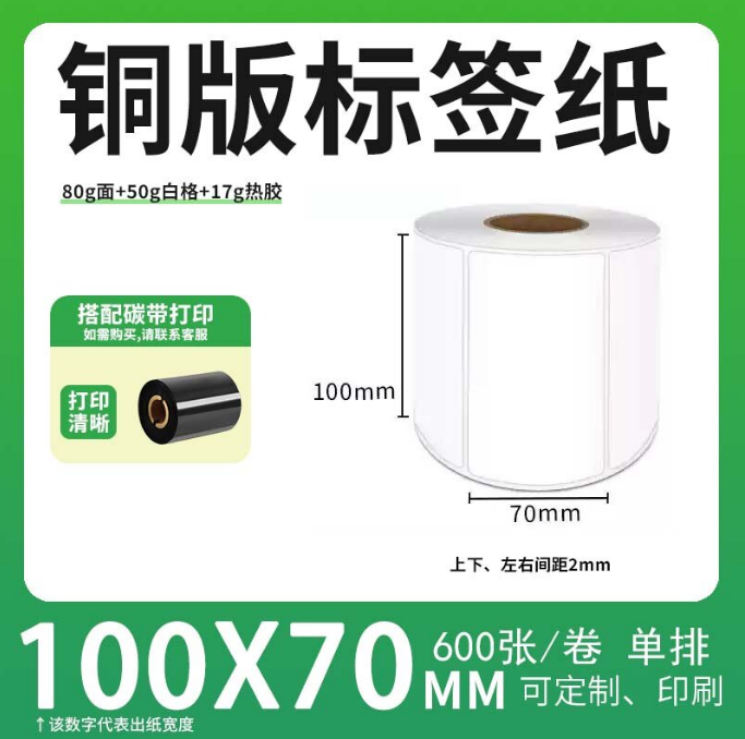 不干胶 铜版标签 空白铜版标签 白格铜版纸不干胶带裂线 100*70*600枚/卷(单排) 货 号:KY000533